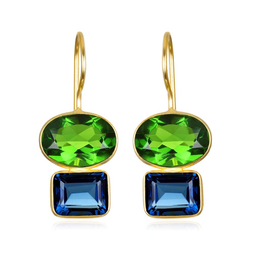 A joyful interplay of color and shape, these earrings from Amelia Rose Jewelry pair emerald-cut lime quartz with oval-cut sapphire blue quartz for a fresh, striking contrast. The bezel-set stones are handcrafted for a clean, modern finish, while French hook ear wires offer effortless wear.
