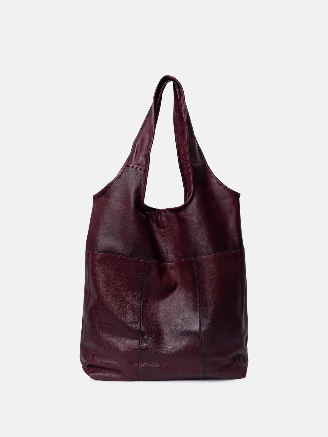 Classic tote in lightweight full grain leather. Fits all daily needs, with a slip pocket, unlined for a natural look, and room for a 15" laptop.