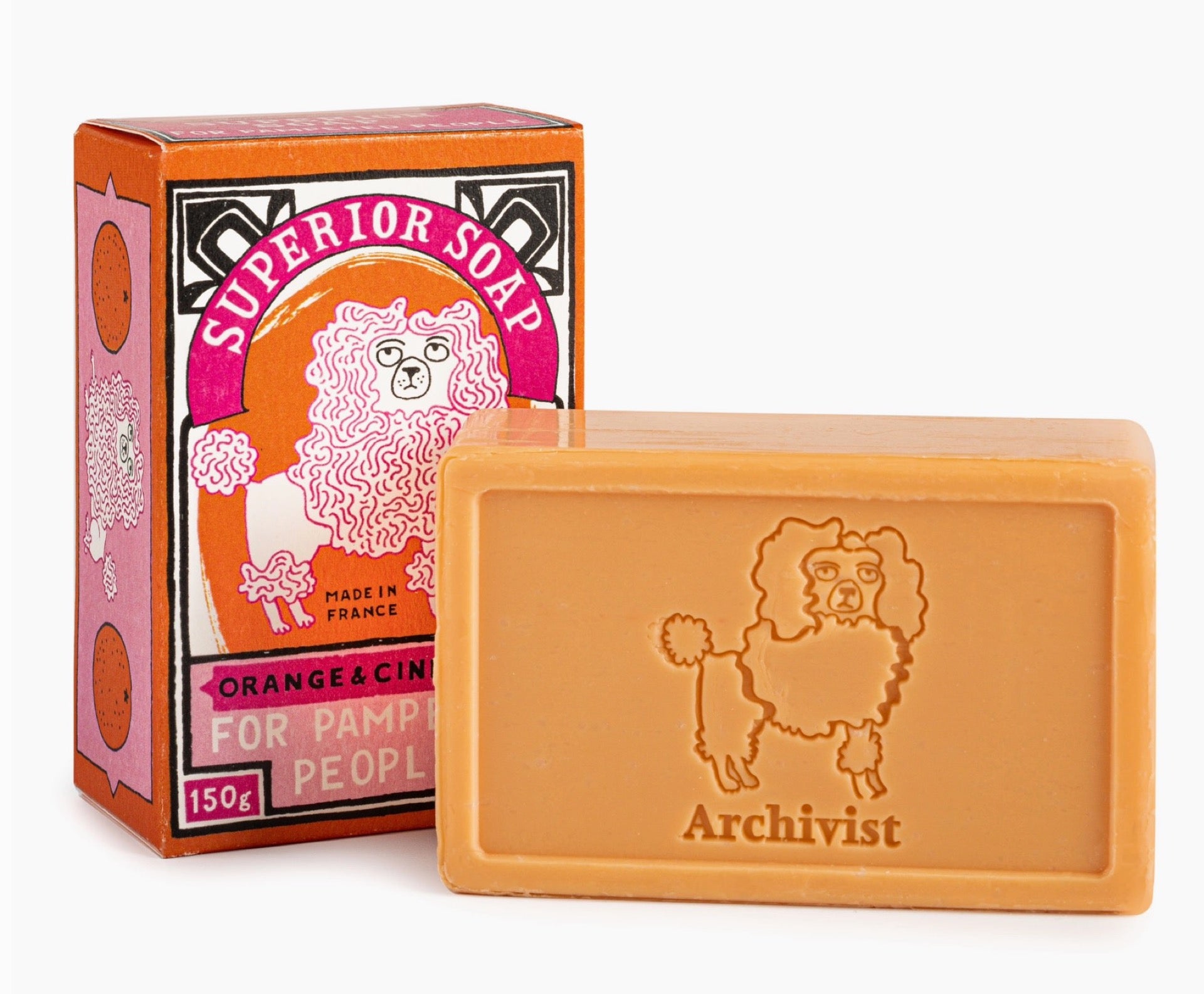 Archivist has teamed up with an incredibly talented and nose-trusted soap maker in the dreamy land of Provence, France to bring you Savon d'Archivist (catchy right?!). From lovely lemon, warming orange and cinnamon and the escapism of Provence in a intensely scented soap we are launching our very own range of soap, carefully selected and packaged beautifully with our letter-pressed wonderfully bonkers obsession with poodles!