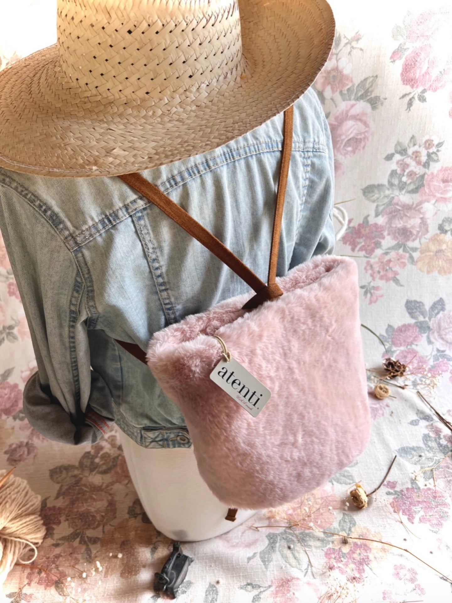 Faux Fur? We're fur real! A classic soft blush fur will have you tickled pink. Time for a wintery vaca! A timeless vintage meets modern style, this bag is sure to stand out. Take your style to the next level with our newest design - a hybrid of the Halle Bucket and Backsac. Combining the shape of the Halle with the versatility of a backpack, this bag strikes the perfect balance between playful and functional. With adjustable straps that ensure a personalized fit, you'll have all the room you need to carry your must-have items. Prepare for a daring adventure with this unique bag!