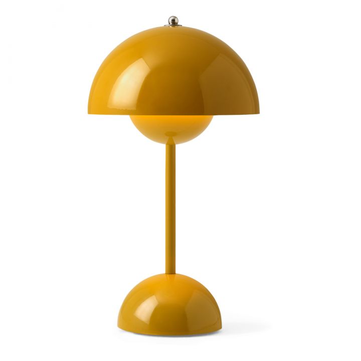 Give your interiors a go-anywhere flair with the sleek style of the Flowerpot VP9 Rechargeable Table Lamp from &Traditions. A clever contemporary design from the mind of Verner Panton, it starts with a hemispherical base that extends a central stem upward, unimpeded by a mandatory cord, and powered by a battery charged via a USB port and cable. The lightweight lamp is primarily made from polycarbonate but relies on a steel dimmer to block direct glare from below a sleek dome shade, radiating a warm and even ambiance anywhere you decide to place it.