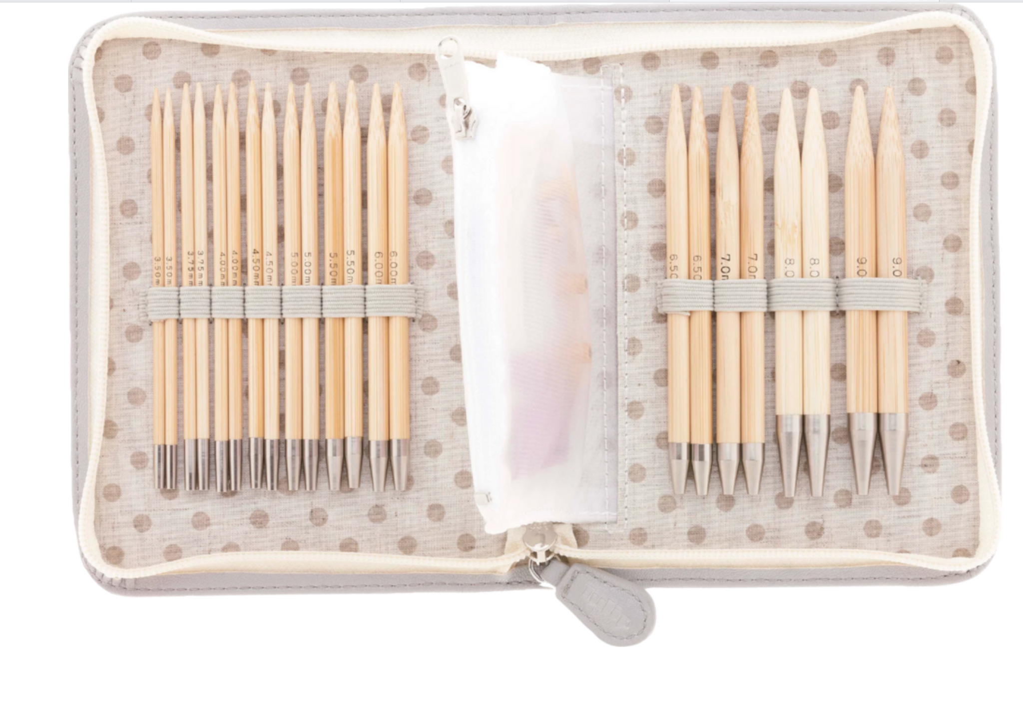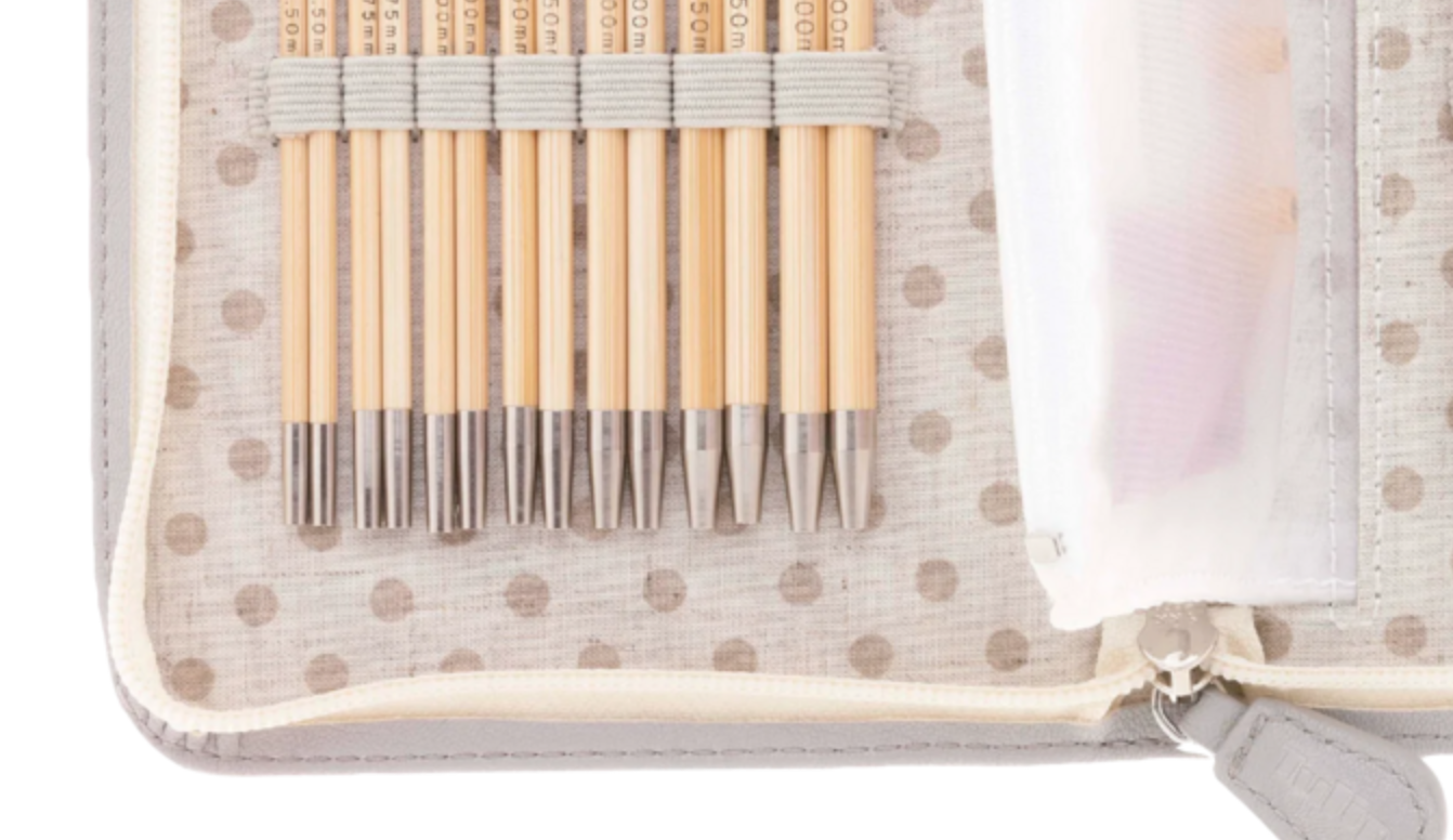 Tulip's beautiful bamboo interchangeable needle set has exceptionally smooth joins to ensure that yarn does not get caught and the rotary cable join prevents twisting while knitting. The tapered needle tips are sharp and can be easily attached to and removed from the flexible cables without using a tool while their unique technology means they won't loosen while knitting!