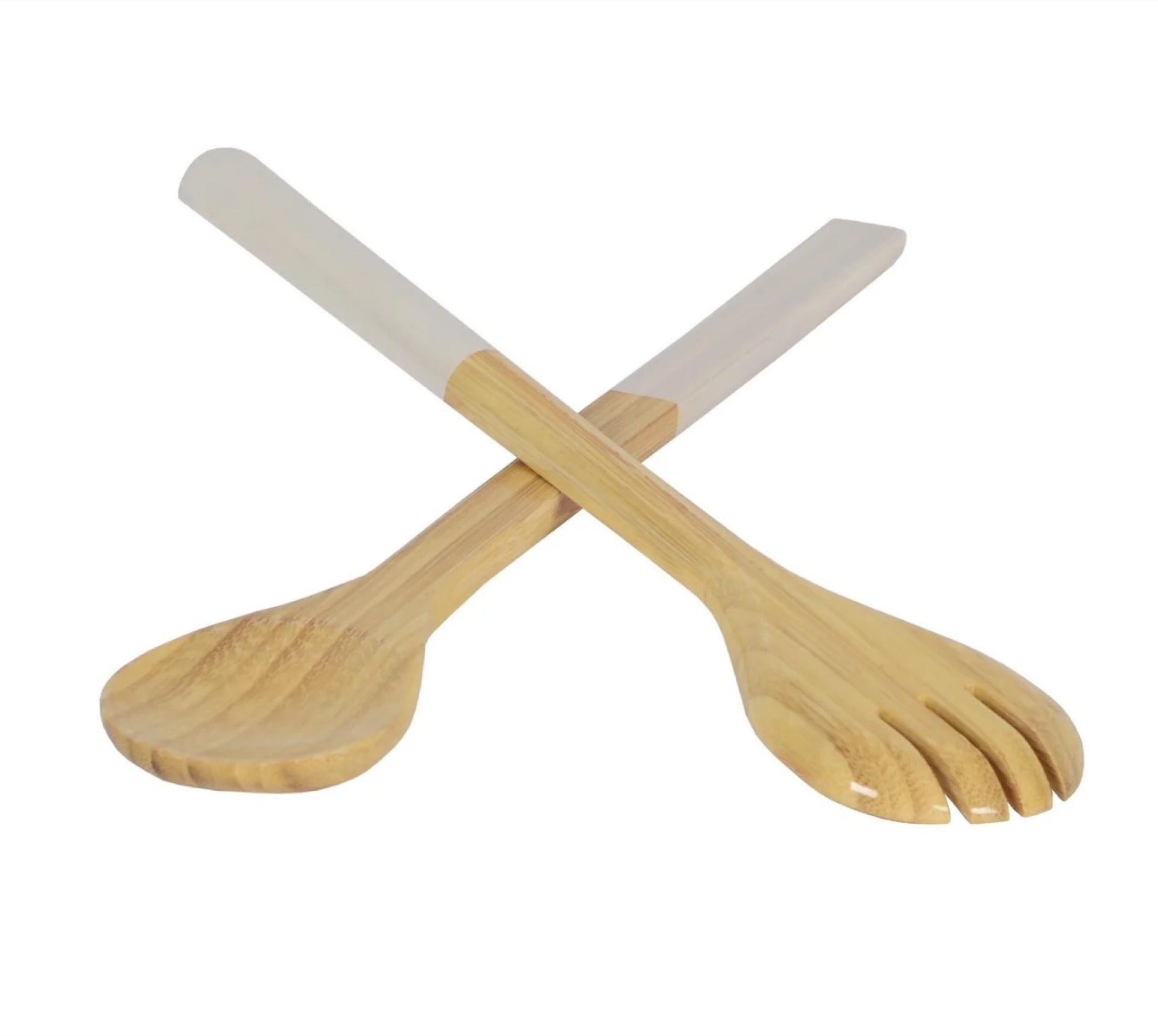 Serve your fresh salads with a unique touch using our 14.6" salad server set. Its elegant design and generous length make for effortless handling and a stylish ambience. The perfect addition to your bamboo bowl!