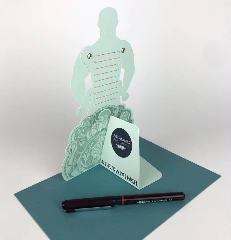 Alexander the Strongman with moving arms by artist Sarah Young.