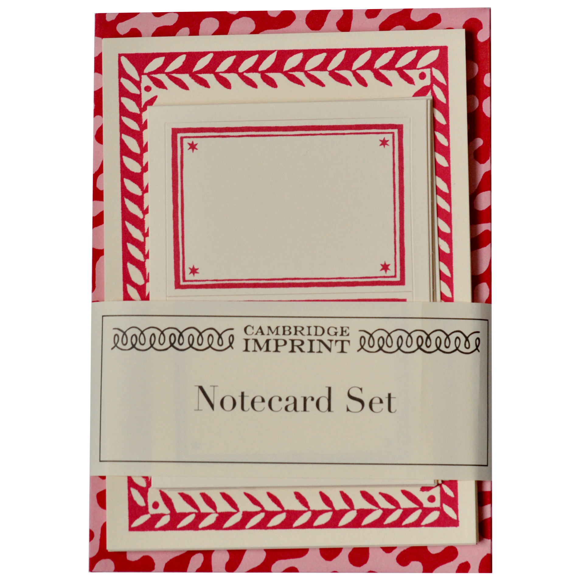This set includes ten notecards featuring a charming patterned border, each paired with a matching patterned envelopeand a self-adhesive address label. The envelopes are traditional diamond-flap style with a water-soluble gummed strip for easy sealing.