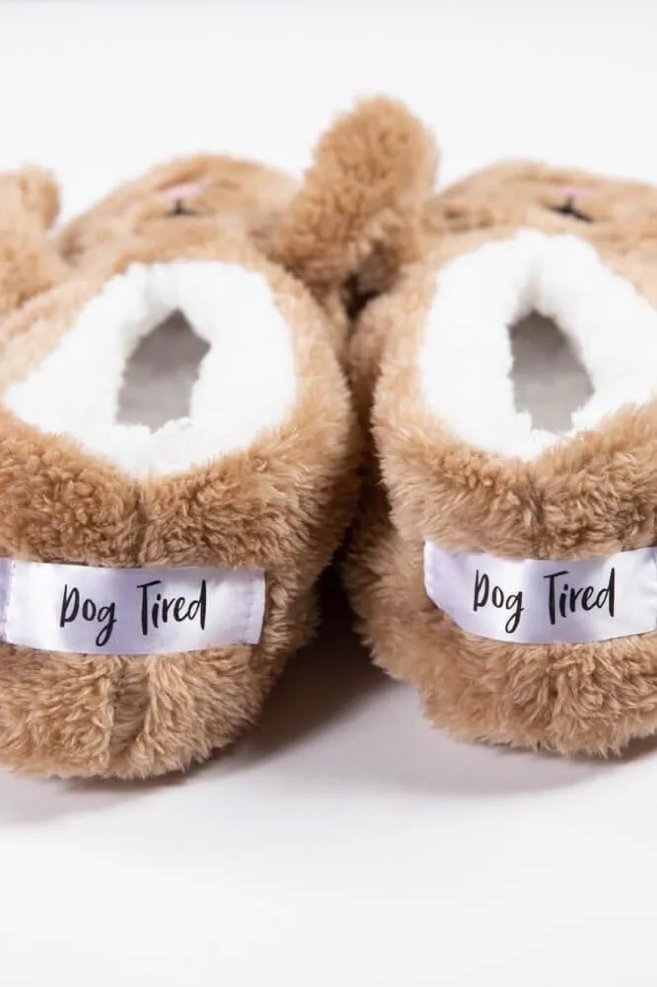 They’re plush inside and out with an adorable puppy design in front and "Dog Tired" messaging on the back. These cozy puppy slippers will be friends to cold toes everywhere.