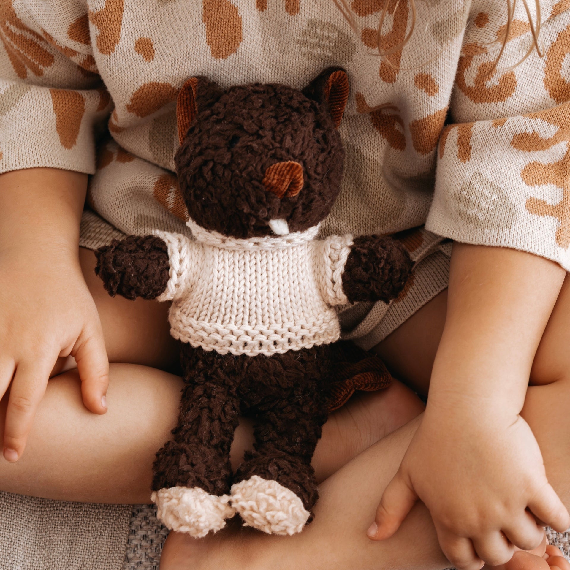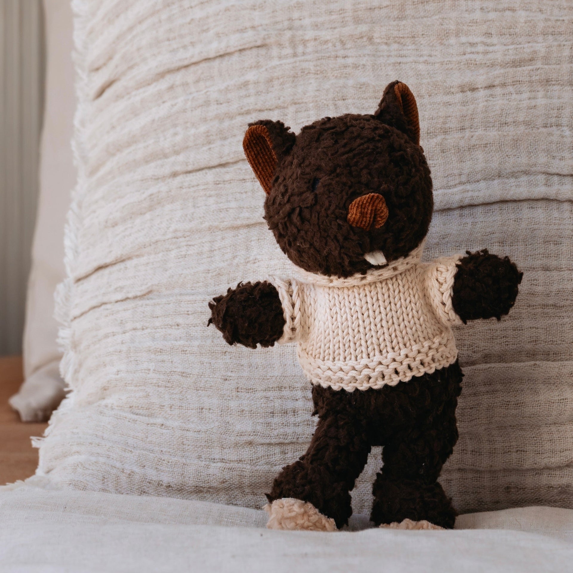 Murray Beaver is made from beautifully soft 100% cotton plush chocolate and wears a cosy vanilla-cream Australian merino wool knitted sweater.