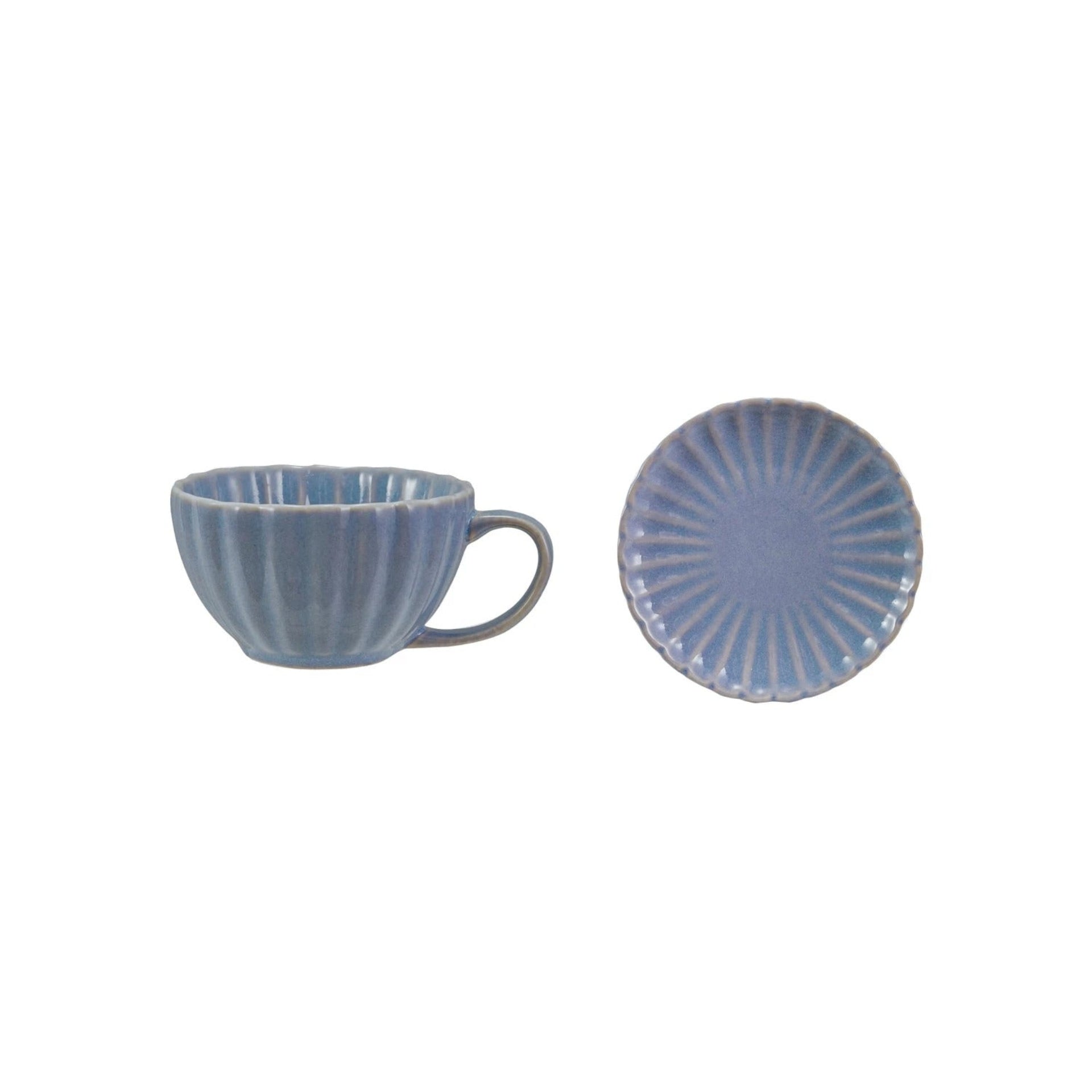 6" Round x 3"H 10 oz. Stoneware Ribbed Mug w/ Saucer in a Reactive Glaze
