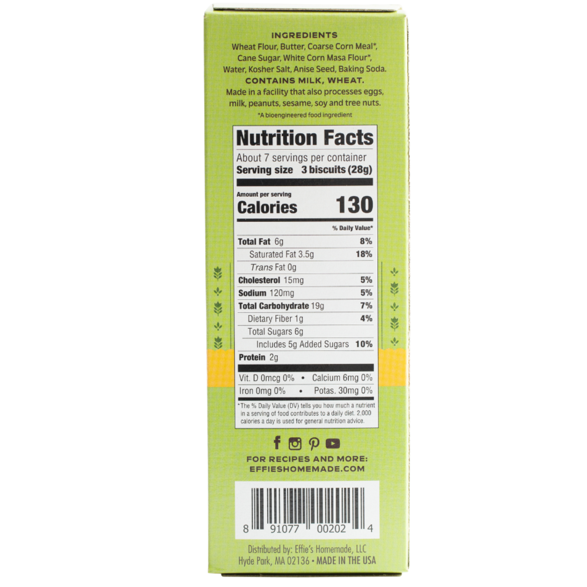 Buttery, crunchy cornmeal biscuit with an unexpected touch of anise. Perfect with coffee or a spread of fresh chèvre and red pepper jelly