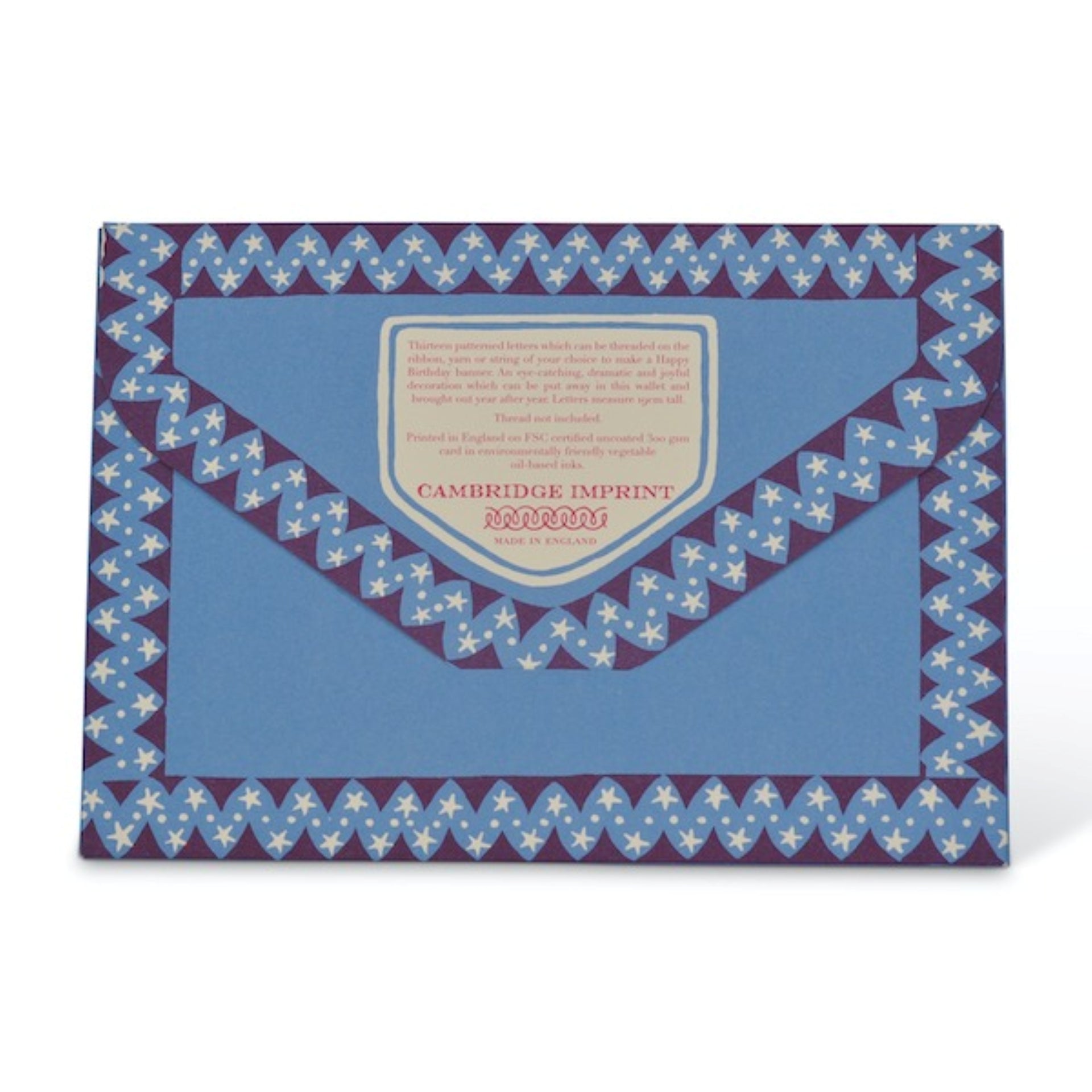 Made in England from 300 gsm matte, uncoated responsibly sourced card, printed with vegetable oil-based ink in hand-mixed colours. There is no glue, plastic or metal in the banner itself or its packaging: the entire product is fully biodegradable and recyclable.