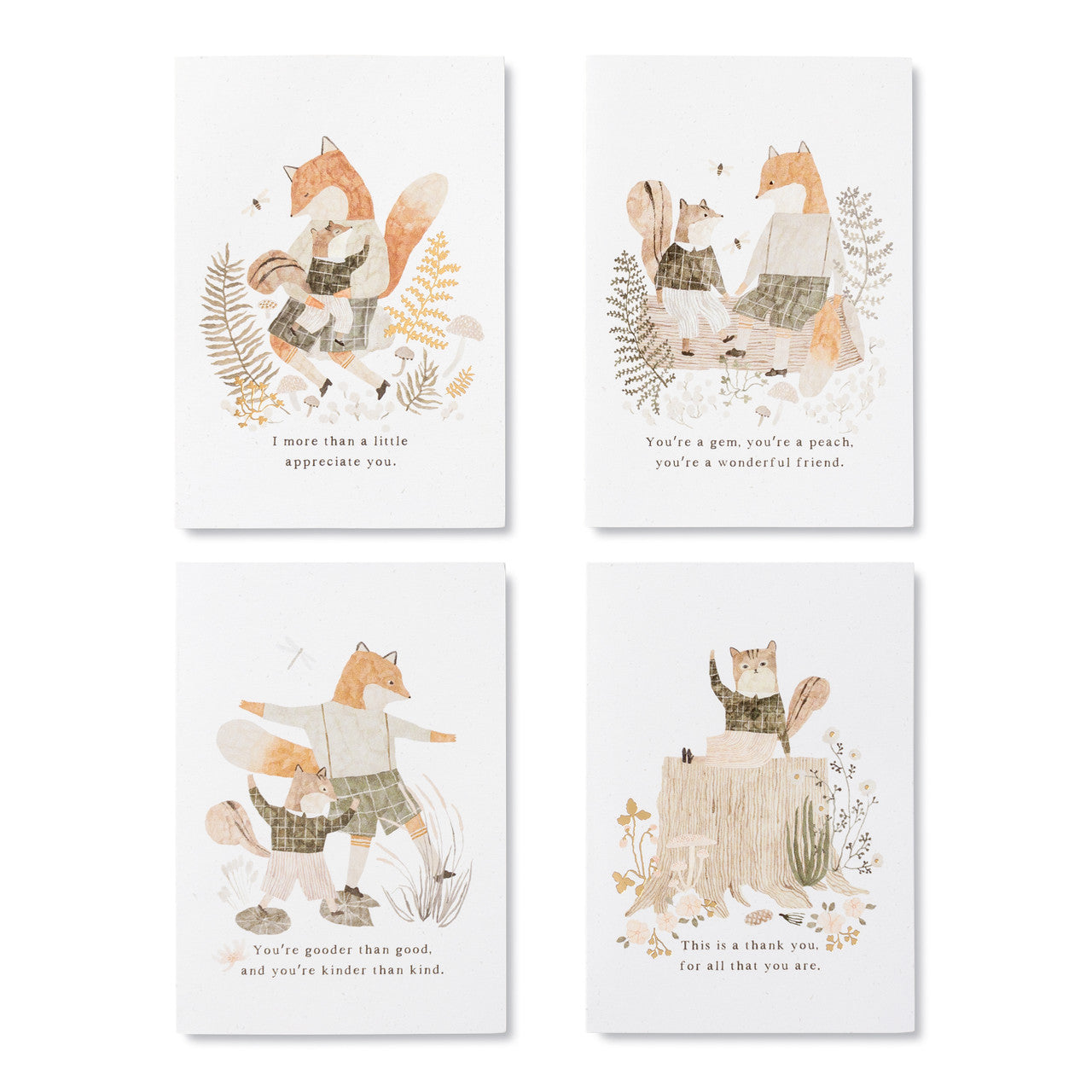 - Adorable illustrations of a chipmunk and fox duo make each card fun and easy to give